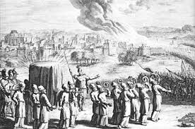 Kemenangan militer pertama dan paling terkenal dari tabut itu yaitu runtuhnya tembok kota Yerikho/Jericho. Pendeta Lewi yang bertugas membawa Tabut, mengangkutnya mengitari kota bertembok itu sekali sehari selama 6 hari. Di hari ke-7, mereka berkeliling 7 kali dan menyuruh meniup sengkala. Seketika itu juga tembok kota itu pun runtuh.